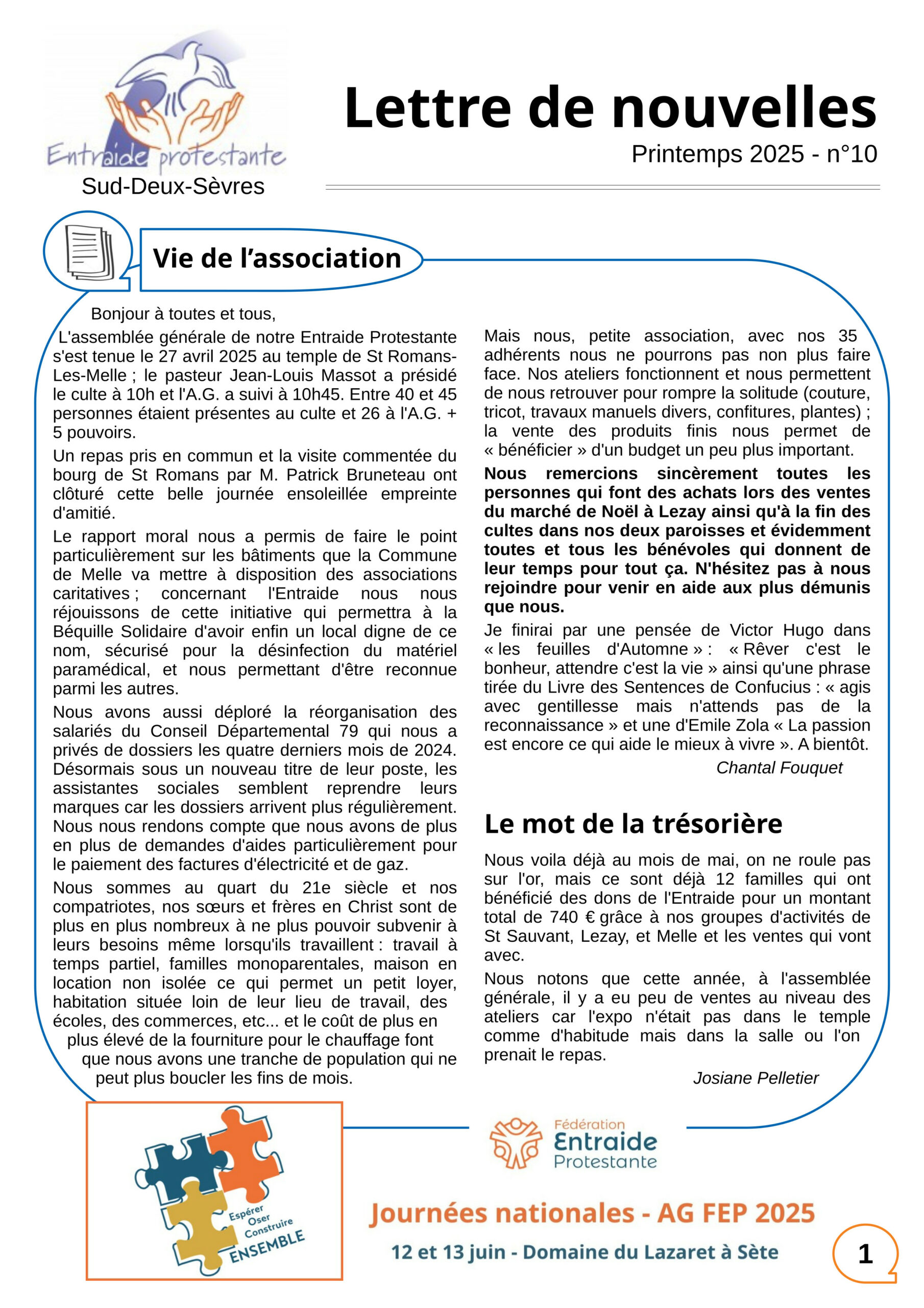Comme l’année dernière à la même époque, il nous manquerait près de 30 000 euros pour finir à l’équilibre au regard du budget prévisionnel. Cela paraît énorme… Et pourtant c’est tout à fait possible. L’Église n’existe véritablement que par ceux qui la composent. Plus nous serons, moins la charge sera lourde pour chacun.