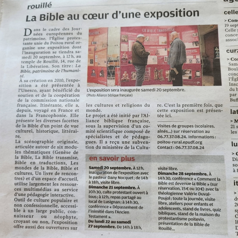 On parle de nous ==> Article la Nouvelle République sur l’expo bible
