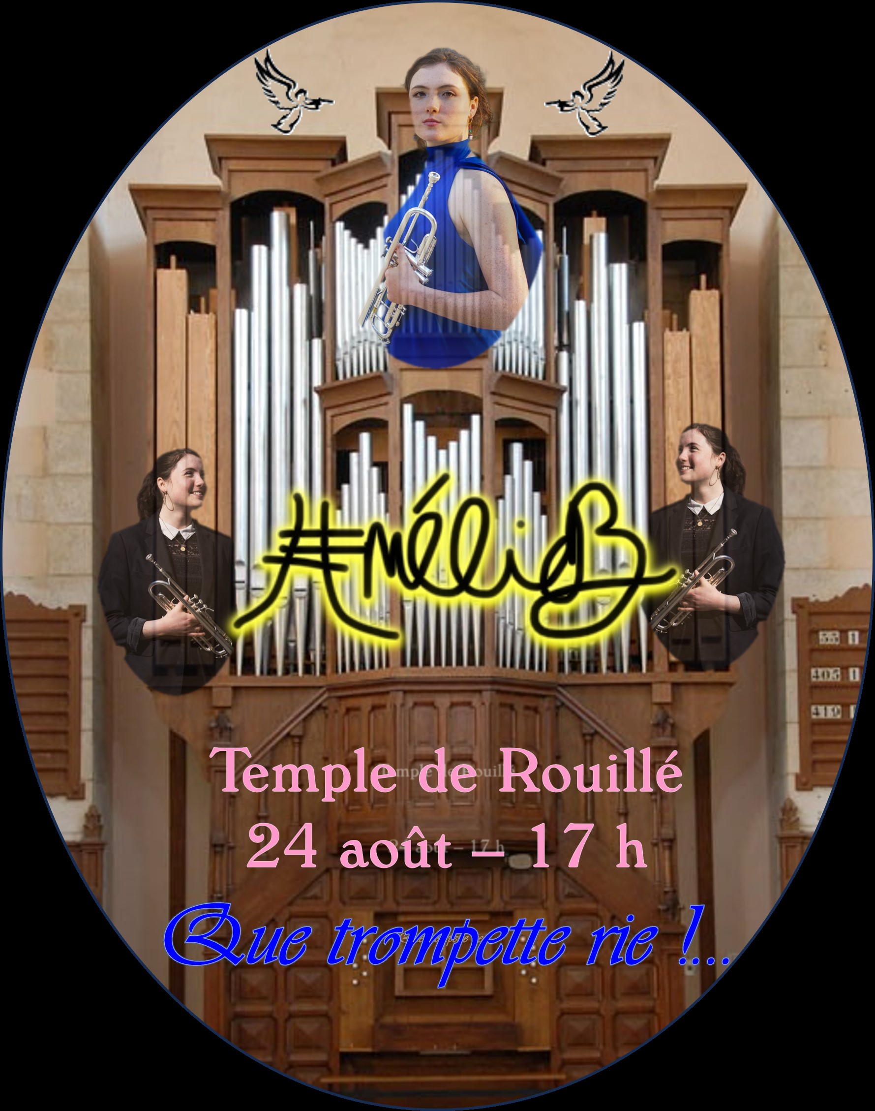 Dimanche 24 août prochain, à 17 heures, nous aurons l’immense plaisir de retrouver la jeune trompettiste Amélie Bentham. Son passage éblouissant dans le temple bondé il y a deux ans (les voûtes du temple en frémissent encore…) reste en mémoire de tous les auditeurs. Amélie poursuit son chemin vers une carrière qui s’annonce brillante : arrivée à 14 ans de Cambridge à Rouillé en 2020 (un simple saut d’octave sur le méridien de Greenwich…), elle est désormais au Conservatoire National Supérieur de Musique de Lyon, prépare des Concours Internationaux mais reste fidèlement attachée à Rouillé et désireuse de partager avec nous sa passion musicale, toujours avec le même juvénile enthousiasme, en compagnie de Michel Milhères à l’orgue.