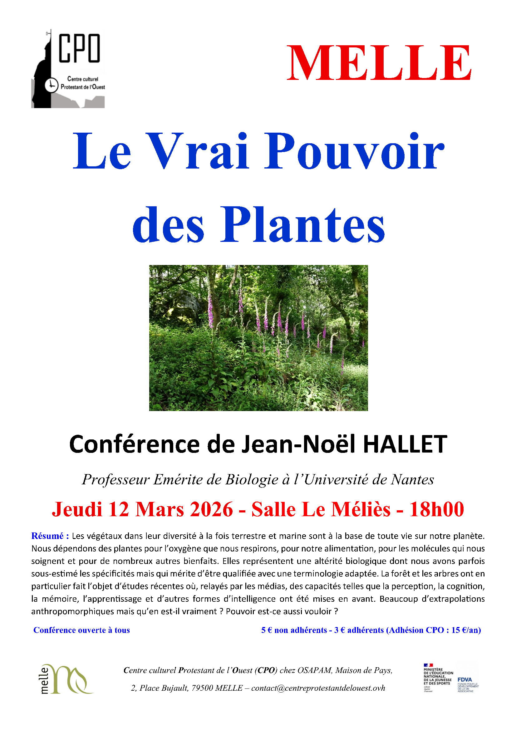 Après les deux premières conférences à Melle qui ont suscitées un intérêt général  le 29 Janvier puis le 19 février, une nouvelle conférence aura lieu le 12 mars prochain Nous espérons que vous serez au moins aussi nombreux que lors des 2 précédentes éditions. Elle portera sur un sujet objet de tant de déclarations fausses, que la vérité mérite d’être rétablie.